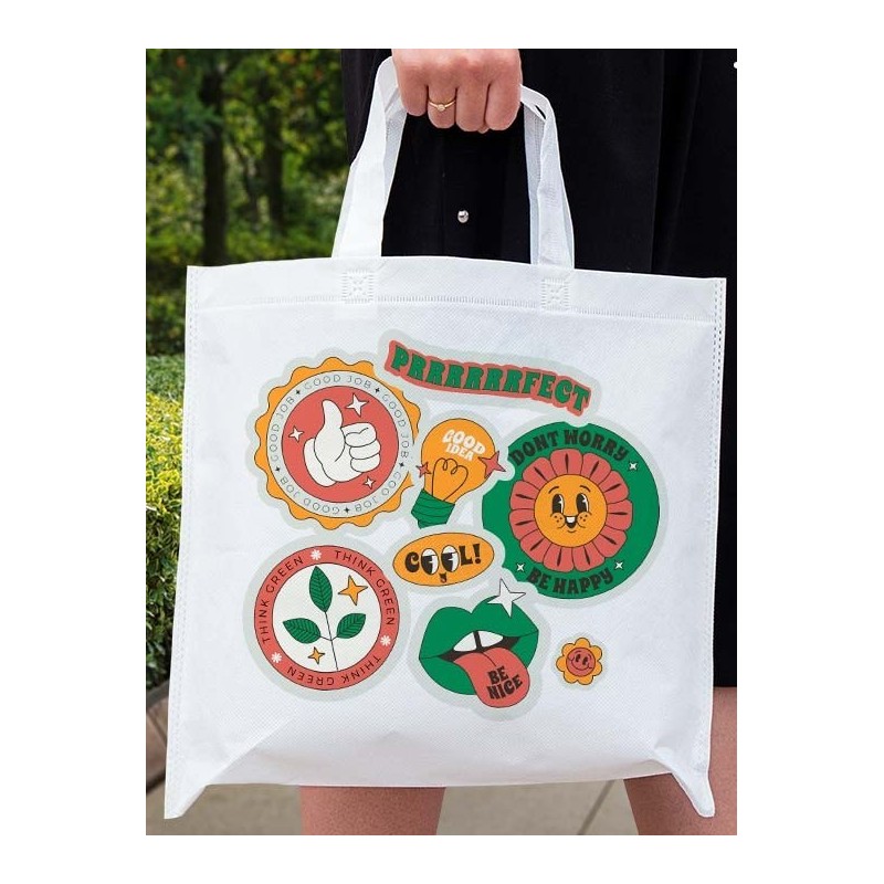 Bolsa blanca confeccionada con tejido sin tejer (TST) o tejido no tejido (TNT) personalizable mediante sublimación.