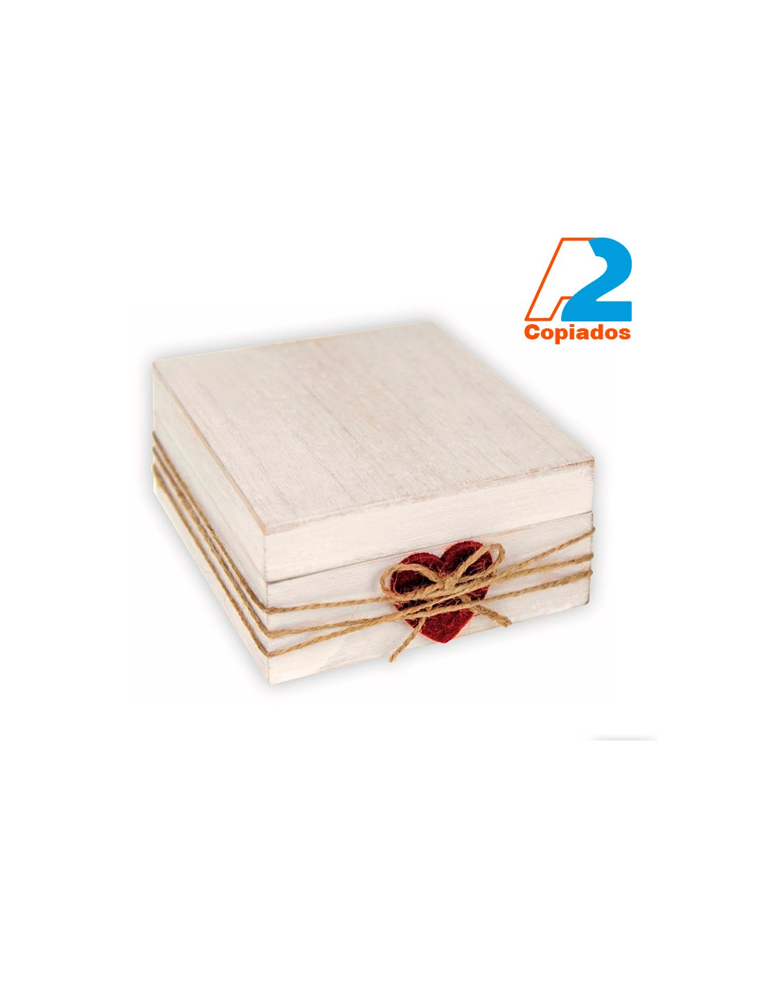 Esta encantadora caja decorativa de madera es perfecta para guardar pequeños objetos o presentar regalos de una forma especial. Su diseño rústico en acabado blanco, con detalle de cuerda natural y un delicado corazón rojo, transmite calidez y romanticismo, ideal para ocasiones especiales.